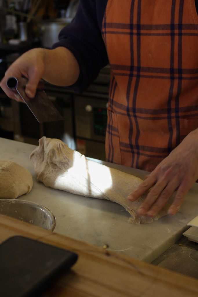 ・ちょっとマニアックになりますが、加水率(小麦粉に対しての水の量)を高めにすることで中はもっちり、外はざっくりの食感を実現しています。もちろんオーブンとの相性も大切。小麦粉の芯まで吸水させる時間管理も大切。